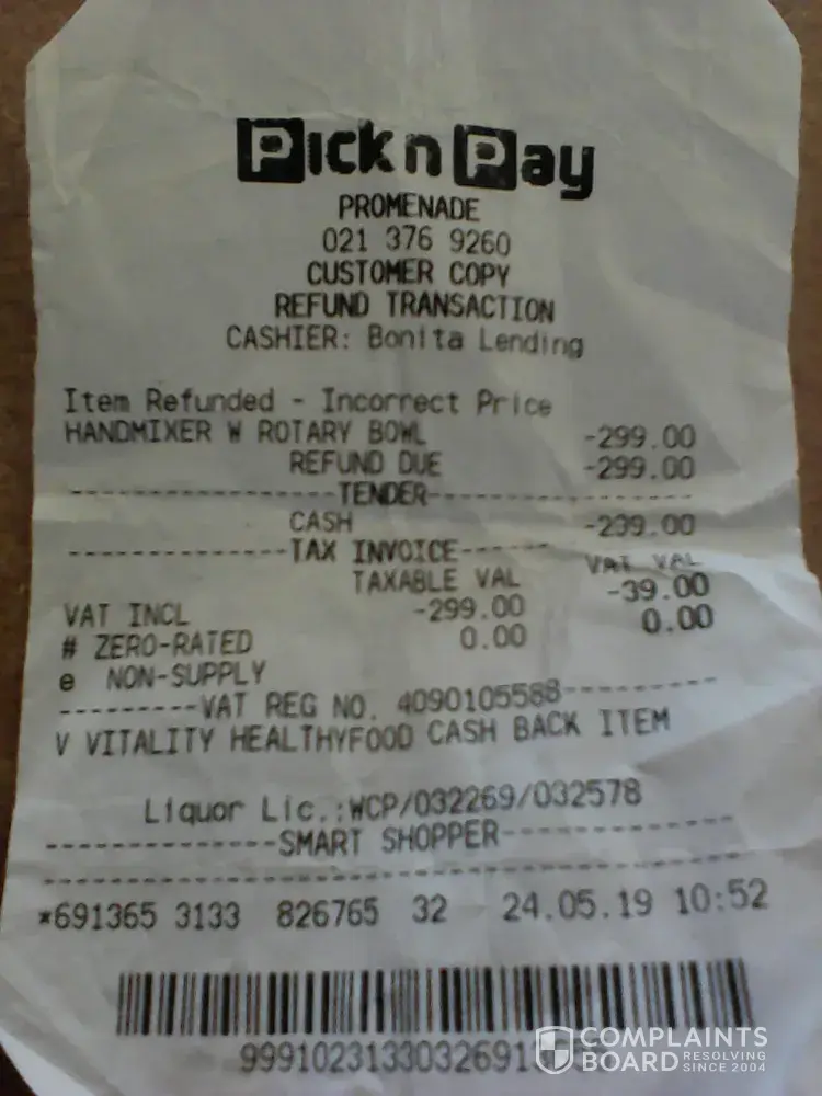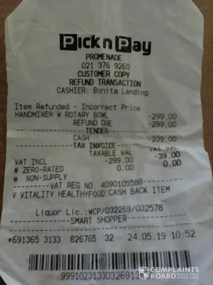 Pensioners purchased a appliance an given as a wedding gift an it did not function an when returned pnp demands a till slip. The slip was misplaced but the point system on pnp card when swiped has a electronic record kept so if the customer provides the card pnp can reprint the till slip to have the appliance returned at the exchange desk. They refused and the pensioners had to purchase a second appliance to hand to the wedding couple not to feel bad. Pick N Pay you are disgusting to do that to pensioners. My parents has supported your retail since established and they live in the area 35+ years
