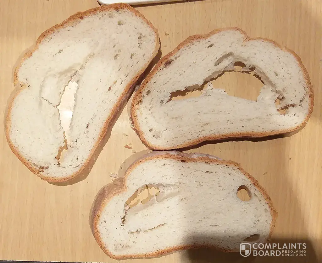 Good day. My daughter has a gluten sensitivity. I was very happy to see your new product line..Gluten Free White Bread (handcrafted gluten free whitebread) and i purchased a loaf for her. When I got home, she cut herself a few slices. The holes in this bread are huge and i would like to know how you would apply butter/marg to these slices. Quite disappointing. Thankfully the flavour is not bad. Please see the attached photographs. Date purchased 05/06/19 from St Peters PnP Observatory Cape Town