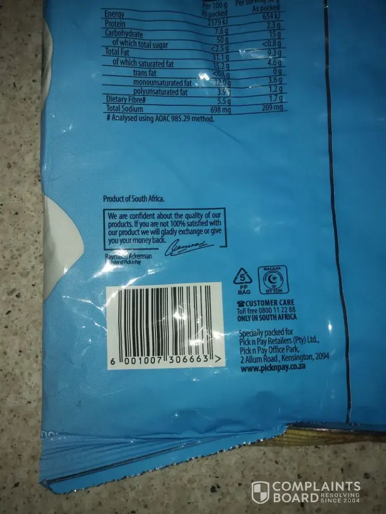 After this experience I don't want to buy at Pick n Pay ever again as I do not trust your food source or your brand name.