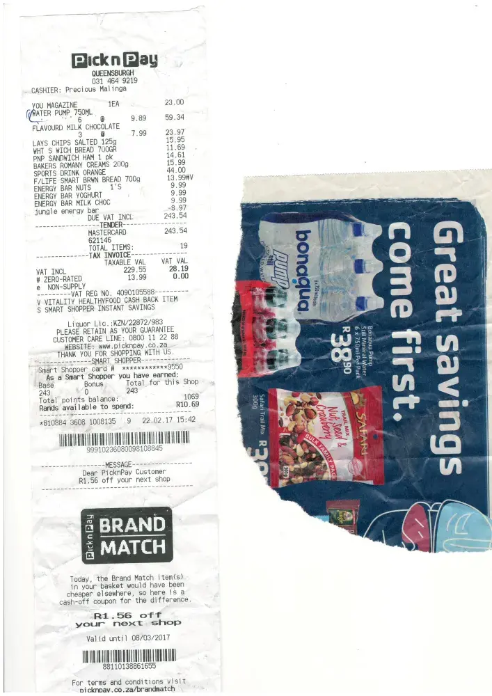 I provided proof of payment plus my pick n pay loyalty smartshopper card.
