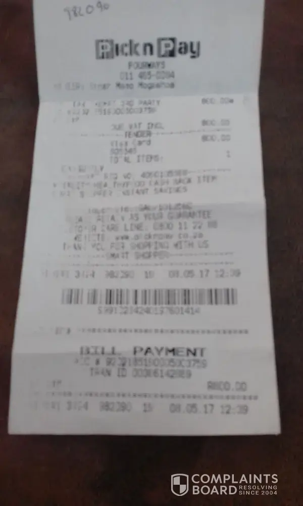 I bought groceries at Pick n Pay East Rand Mall yesterday 17th March 2017 first I asked the cashier to withdraw cash she said she didn't have enough notes in her register then I told her I will pay with my card then I punched in my pin number then she started complaining and said I should try again when I punched my pin the second time the machine declined which time I checked my cellphone notification and it showed me that I was already billed I tried again the second time and it declined again. Long story short I paid twice for the same groceries first with my debit card then with cash as they claimed that there was no proof to them to show I had been debited the first time but I have proof which shows that I had been debited. Then they claimed that they did a reversal I should wait for 24hours for the money to return into my acoount. This is really popostorous having to pay for the same bill twice. I am upset and angry when I called the store today 18th March they told me I must wait until Monday. I just don't understand what am I waiting for because they already billed me and I've got proof fro. the bank statement to prove that I already paid. Today the claim is that they are offline.
