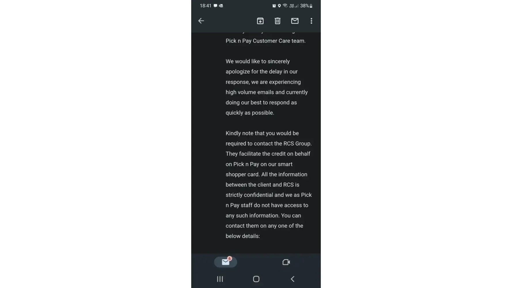 I have called the customer care number numerous times, emailed multiple times, used the whatsapp number all to no avail. I keep getting we are experiencing high call volumes your query will be attended to.