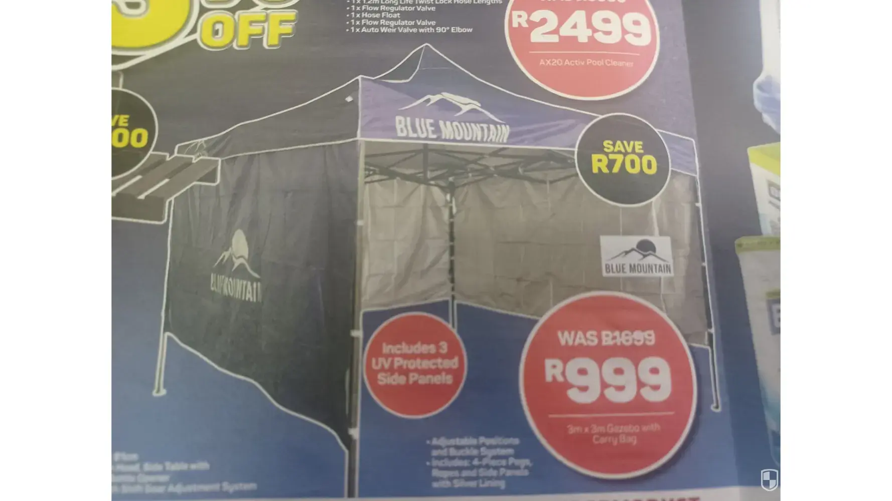 I went to Pick n Pay Hypermarket Boksburg to buy a Blue Mountain Gazebo for R999 was R1699.