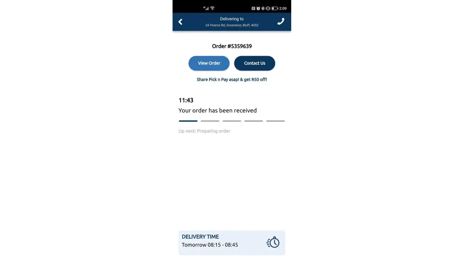 They said he was on the way, the driver only arrived here at 2-45pm. The driver then told me “sorry I was at the wrong address twiceâ€, he went to 136 Johannesburg road, on the invoice it says 136 Lyndhurst road.
