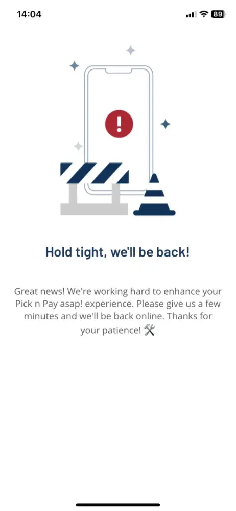 I order my groceries on the pnp ASAP app and no it’s been 30 minutes since the app has been down. May you’ll please quickly rectify this, so that I may get my groceries.