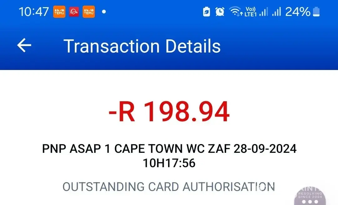 This occurred on 29.08.2023 @ 17:19 at Table Bay Mall, Sunningdale Cape town.