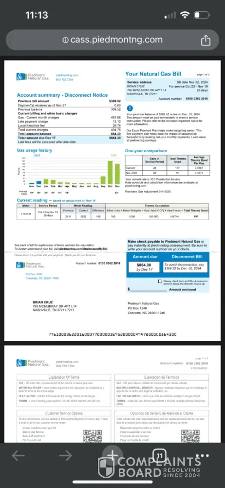 Read full complaint19 Piedmont Natural Gas Company Complaints