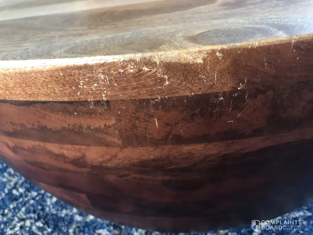 We purchased a Rattan kitchen set, and the paint or laquer is peeling off everywhere (chairs & table). We went back to the store in Ottawa where the item was purchased and was directed to this site. Very unsatisfied.
