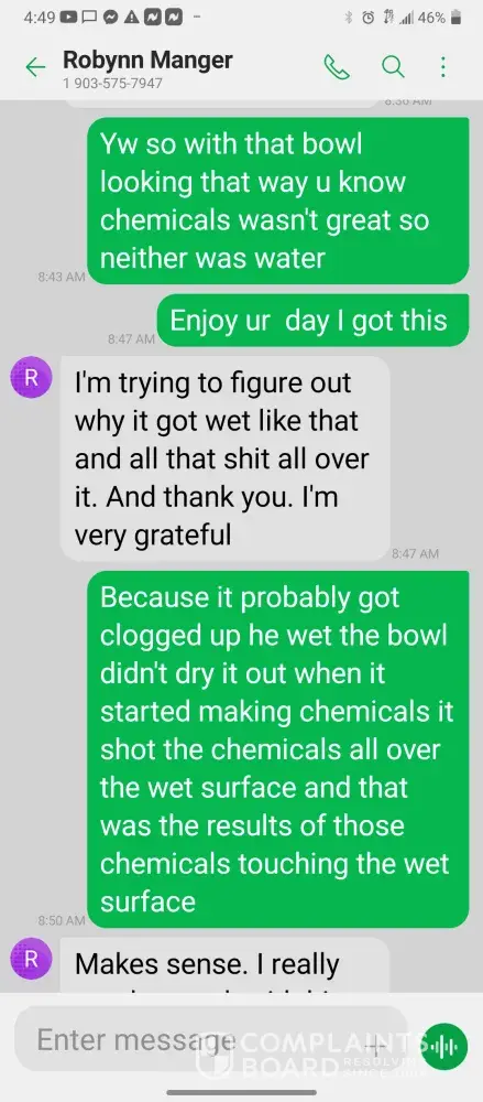 To whom maybe of concern its seems that I am having a very complicated time understanding my new manager and the treatment process she has put into place strictly because she is being directed on what too do on the phone from out chemical guys but after she makes the changes she has a hard time explaining the ups in downs of that process. Just like for...