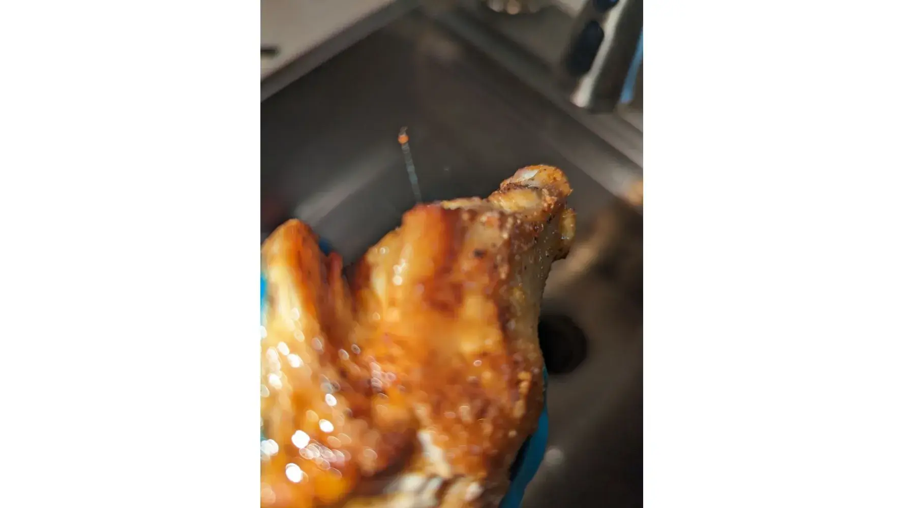 I bought a 5lb bag of chicken wings from Sam's on January 21st. My son loves wings so I make them often (not your brand). Thawed them and put them in the air fryer. When I went to flip them to continue cooking I noticed all these hair like pieces sticking out of every piece. I was so grossed out and it would have taken all day to get these out of each piece. I've never had wings come out of a bag like that.