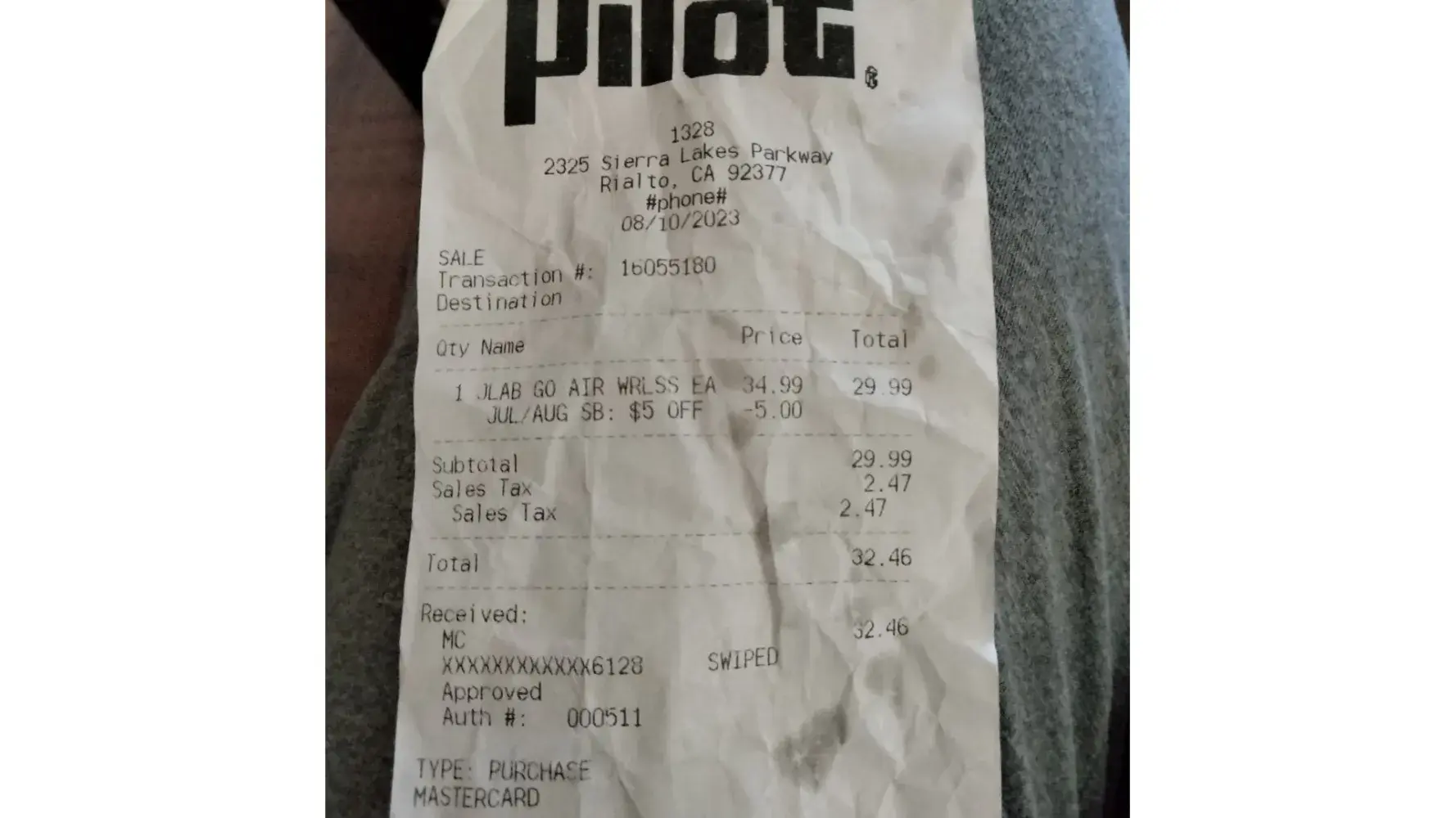 I purchased a pair of JLAB GoAir True Wireless earbuds on August 10, from #1328 2325 Sierra Lakes Parkway Rialto, CA 92377 (the box was empty).