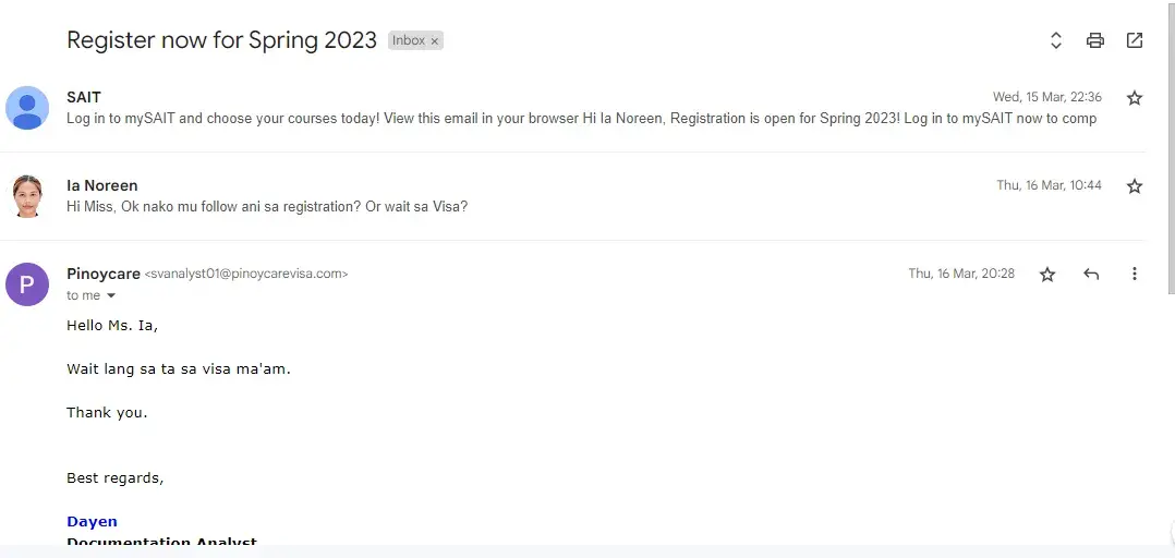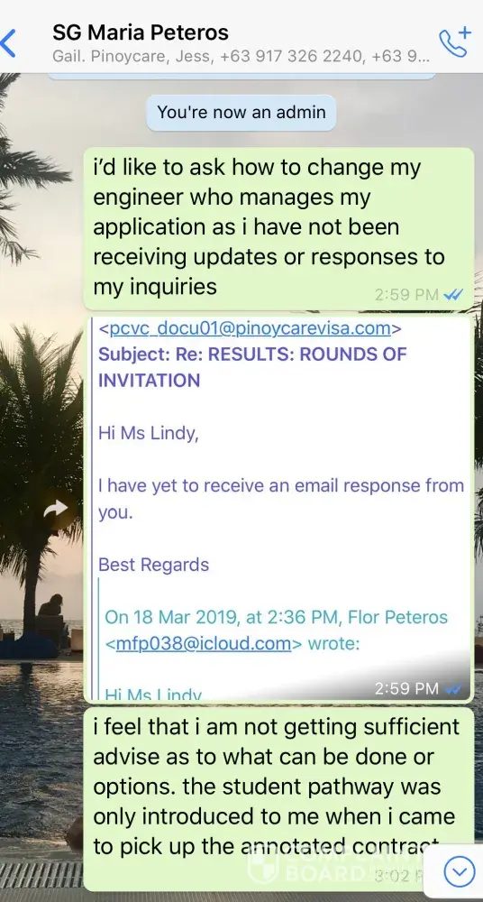 Deyan @Pinoycare, I always remind you for the school registration and you replied to wait for the Visa and not do anything about the school reminders.