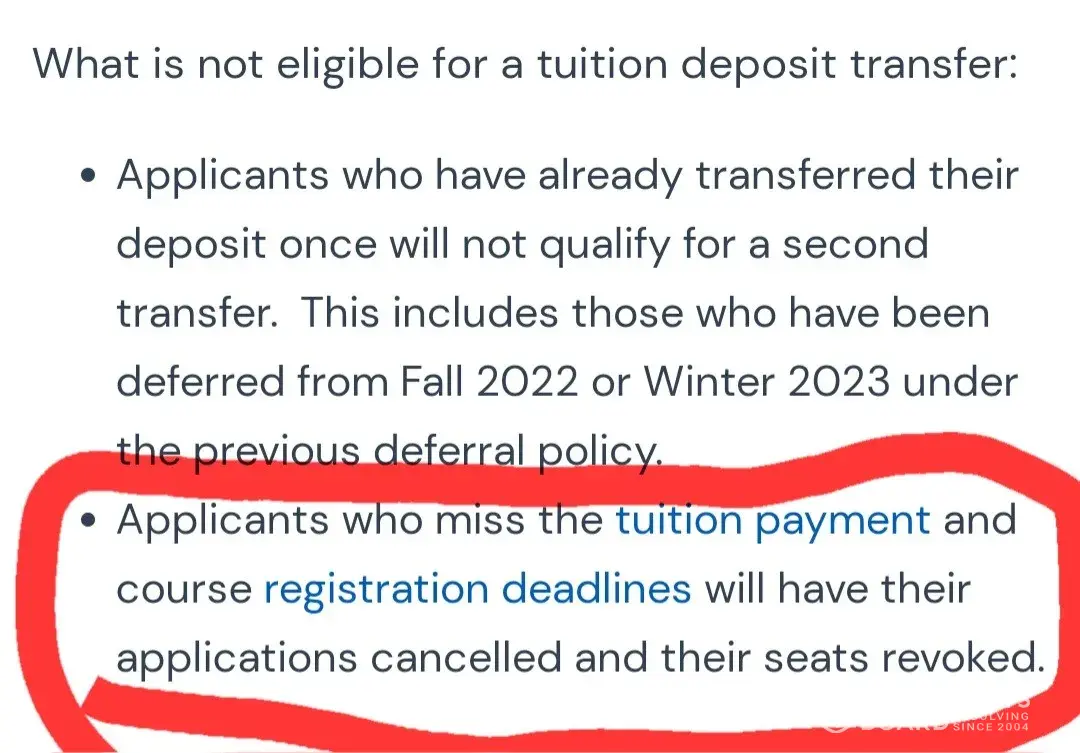 Days before the tuition fee deadline I am the one who reach out to you since I am worried, we do have the VISA yet. Yes, you called, but you gave me the DEFERRAL option which is FINE. But since I do not hear from you often, I emailed the school myself and applied for the deferral but they refuse the transfer because I was not able to register and pay the tuition.