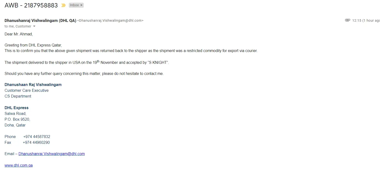 Shipment returned upaab 000000432424323