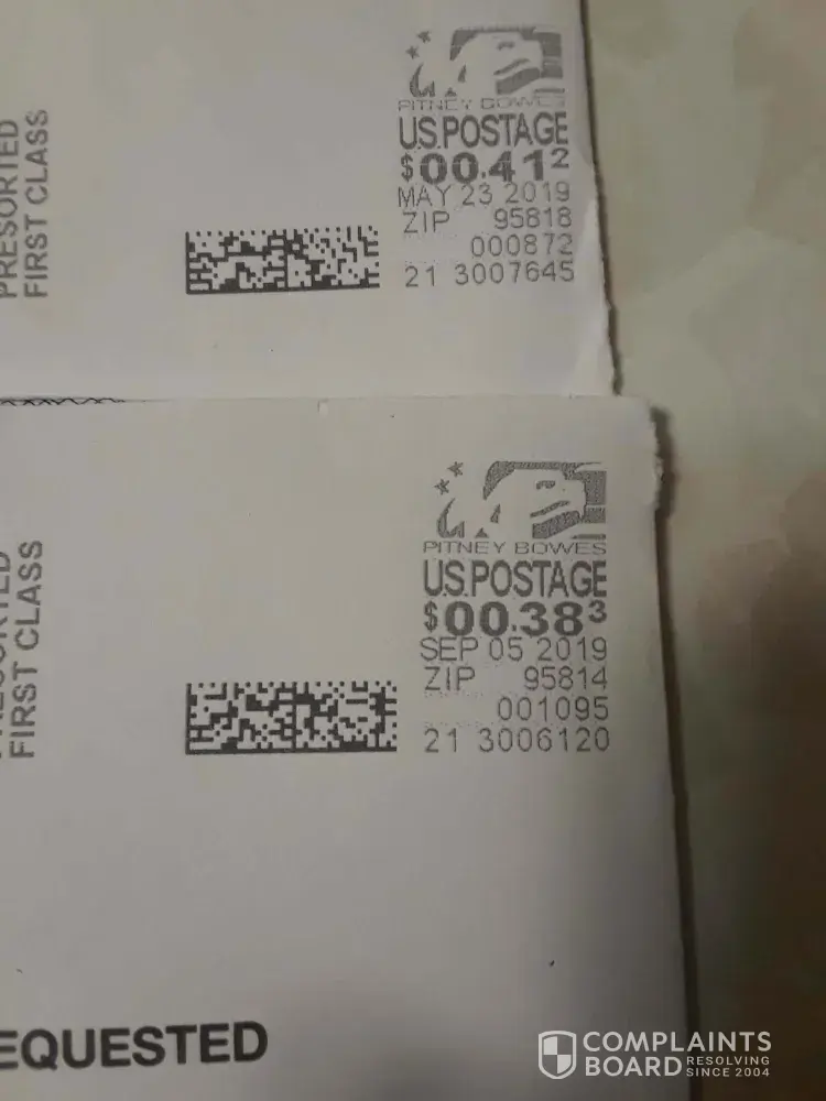 I am a victim of identity of theft and electronic harassment. I received numerous state, Wells Fargo and AAA mail with what looks like the same postage meter with specific range of numbers and incomplete QR code. I find it hard to believe that that all these institutions use the same incomplete QR code and the numbers listed are well within 500 of each other. I've attached pictures.