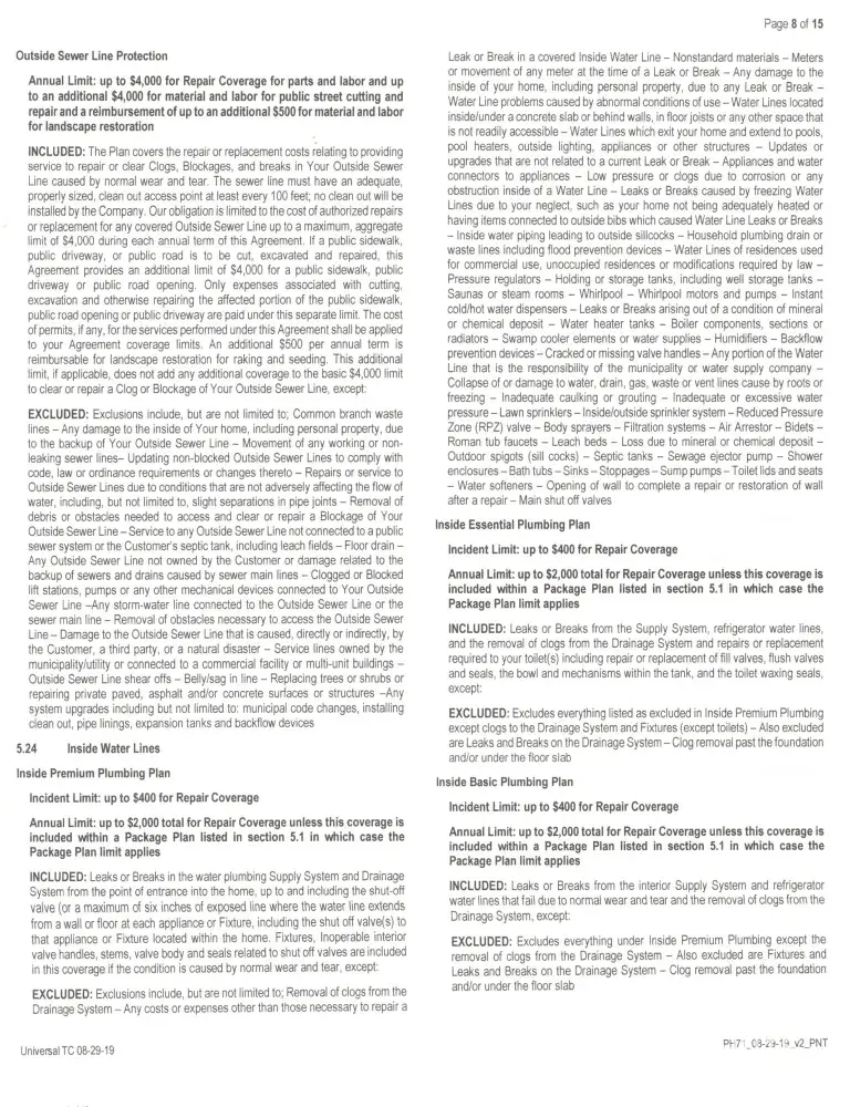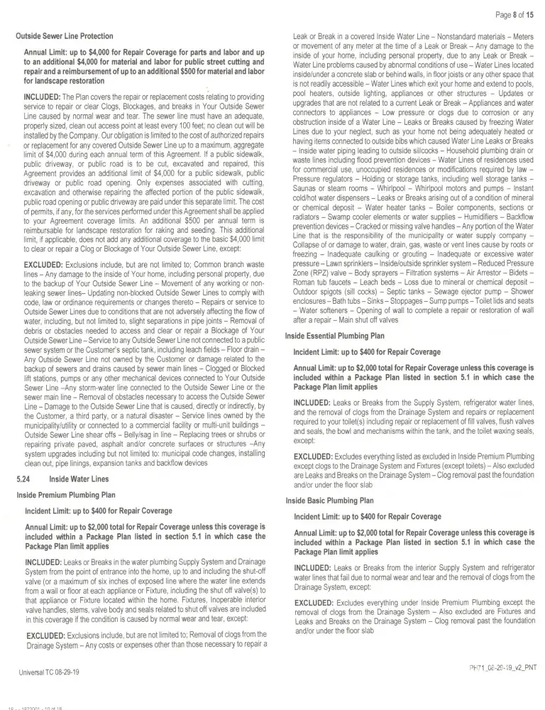Recently I had your plumbing contractors out for a broken sewer line.. it was supposed covered on the agreement I have been paying on for years... first plumber said it covered under agreement and told me what they would do... second group came out and did the same... but they had to talk to boss... bait and switch tactics kick and he come back and said they don't cover the break...