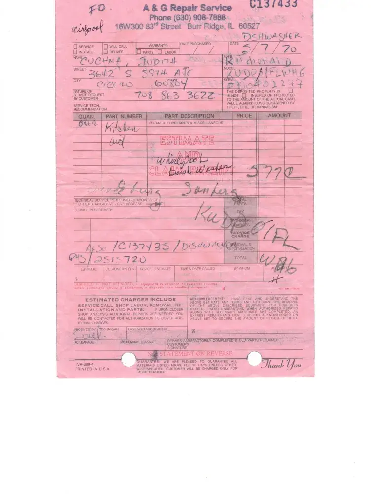 I called for repair on my KENMORE washing machine and Kitchen Aid dishwasher. I called Sears Home Solutions/Pivotal Home Solutions. They sent out a repairman from A&G Repair Svc on 5/07/2020.