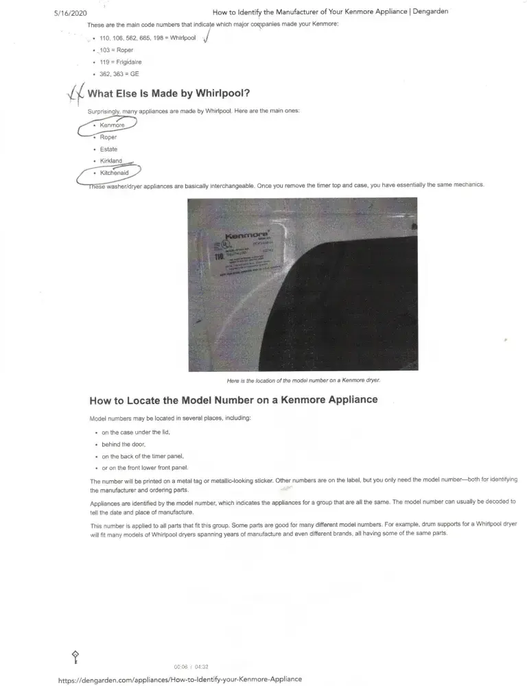The OEM for these machines is the Whirlpool Corporation. Kenmore and Kitchen Aid were not the OEM for these parts. I told her "Kenmore never manufactured anything."