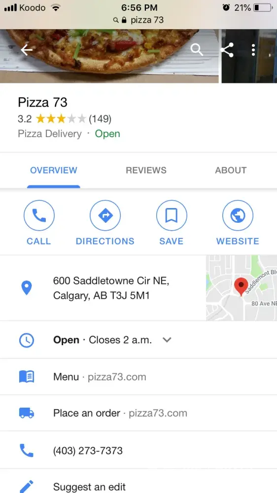 On January 18, 2019, at 6:29 p.m. -- Airdrie Pizza 73