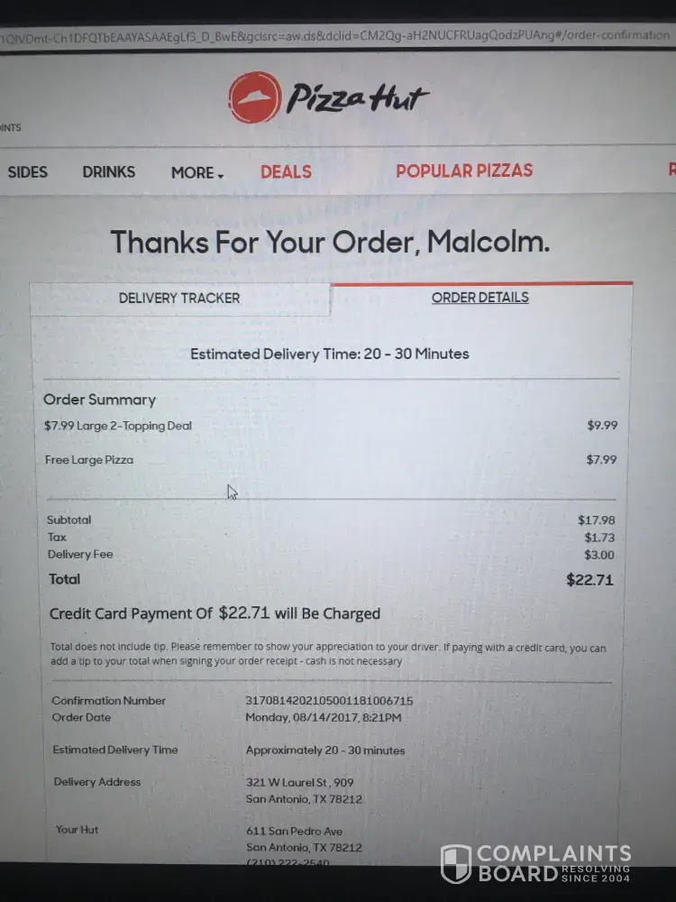 I am attaching the receipt of it and need some clarification from pizza hut that is it right or wrong.