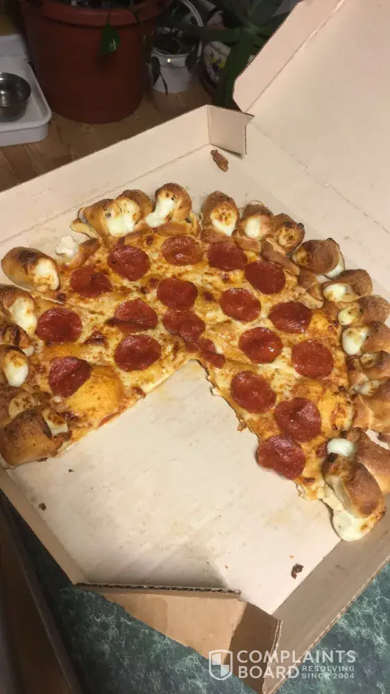 I ordered on line large 2 toppings pizza and 12 Parmesan garlic wings.I picked up my food pizza looked good after I got into the car I open my box of wings they were 8 boneless wings. After going back into the store explain the problem so they cooked some more with bone in but it tasted liked fried wings.Very disappointed .paid 23.63 my family ate them anyway I don't because I was expecting something different.also added extra toppings on my pizza and ordered some garlic dipping sauce