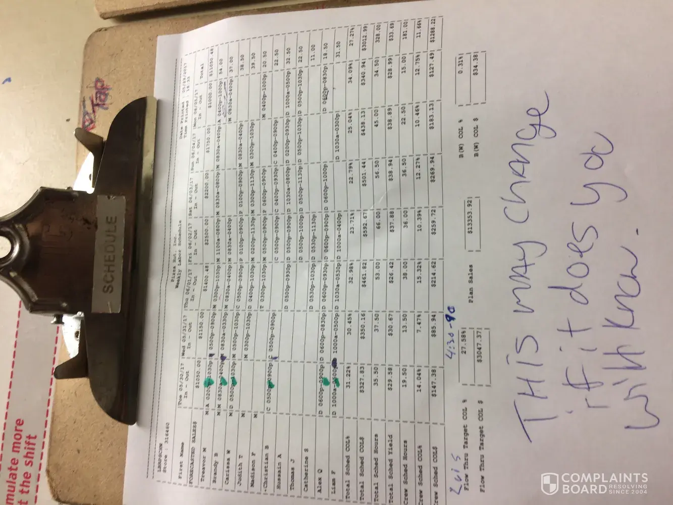 product/ service/ manager/ lateness