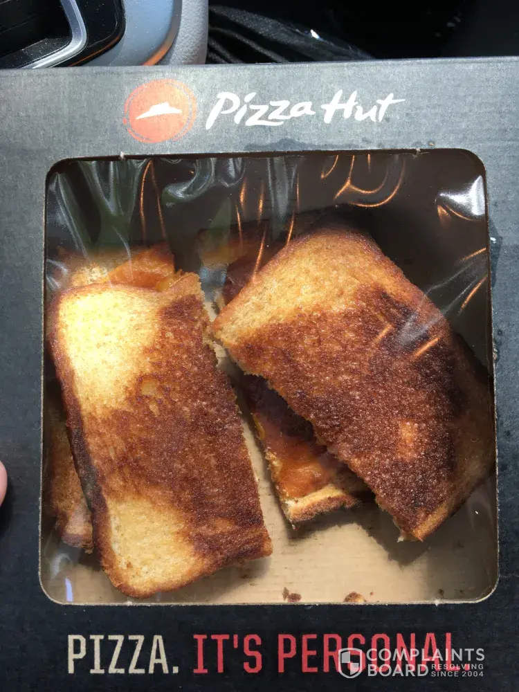 I bought a grilled cheeze at the pizza hut shop in the Target (Winter Garden FL). I want to express my utmost disappointment with the piece of toast I received. Would the owners of Pizza Hut serve this to their kids? See attached photos.
