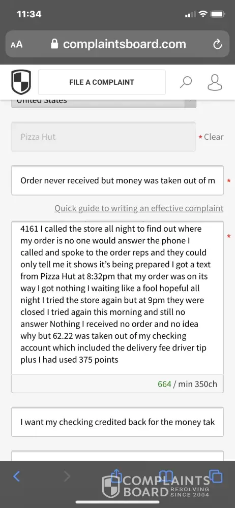 It took two min to take my money from my bank account, and three days of bull from pizza hut supervisor ty. Said I am out of luck, if I want to go to store, guess what? It's shut down I am disabled I reported to att y today. They said they will help me,