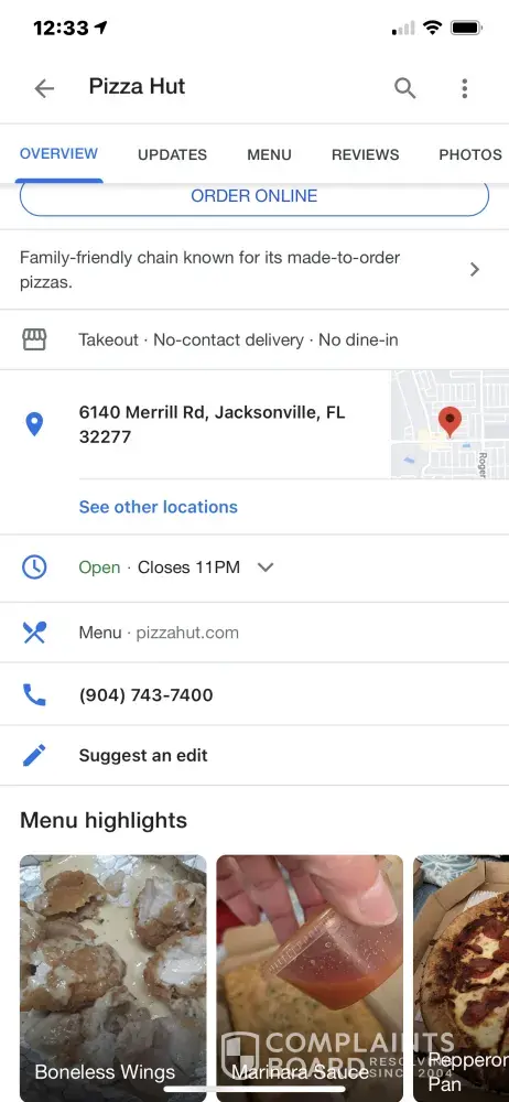 I want to put a big complaint in about the pizza hut at 514 Stafford Road, Wolverhampton WV10 6AN my order number is 514 [protected] I order one gluten free pizza chicken strip side pepsi max a 3 garlic dips I had a phone call not long after I ordered my food online of a young lad that works in the pizza hut shop saying that I have not got any gluten...