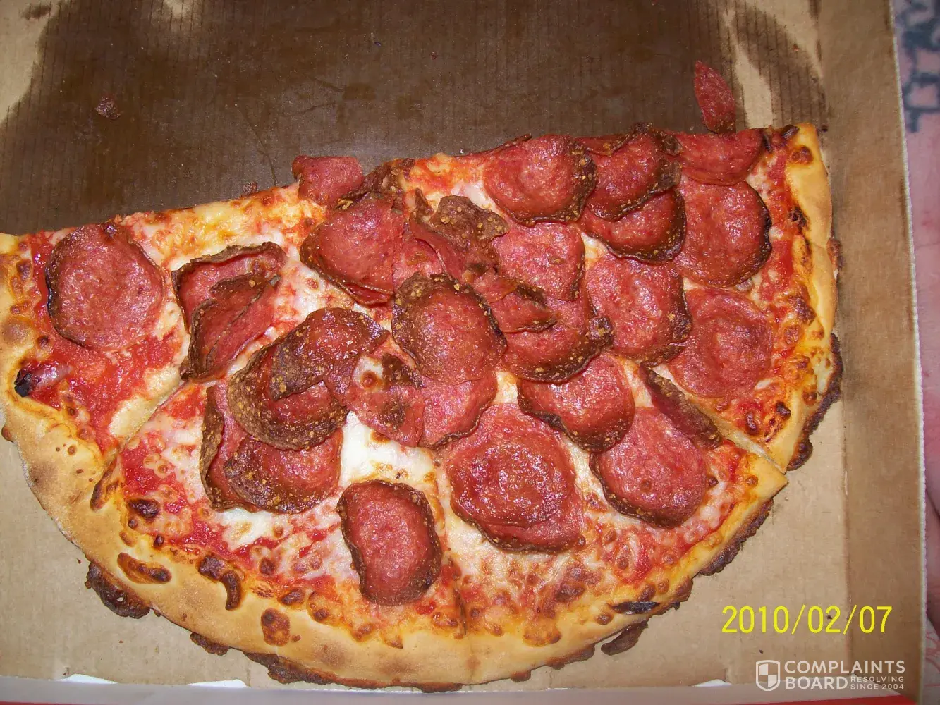 ordered take away pepperoni pizza from Pizzahut which turned up dry, cispy and burnt looking. it looked to me like it had been re heated and shoved in the box. itwas over oily. i had one piece and fifteen minutes later threw it up.i felt sick for ages after. contacted them and got a polite email saying they would contact branch concerned to riase the mater. don't think company standards are really carried in in practice with staff they employ. won't use them again.