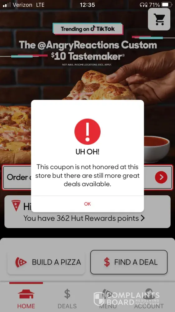 This is the third series of occurrences of this type since July 2019. Each occurrence has resulted in us contacting Pizza Hut Customer Service to file a complaint.
