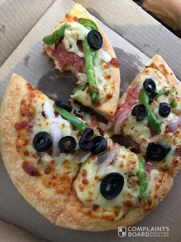 I have pictures of the pizza the day we got it and how it was already dried and no life and also a picture of it today