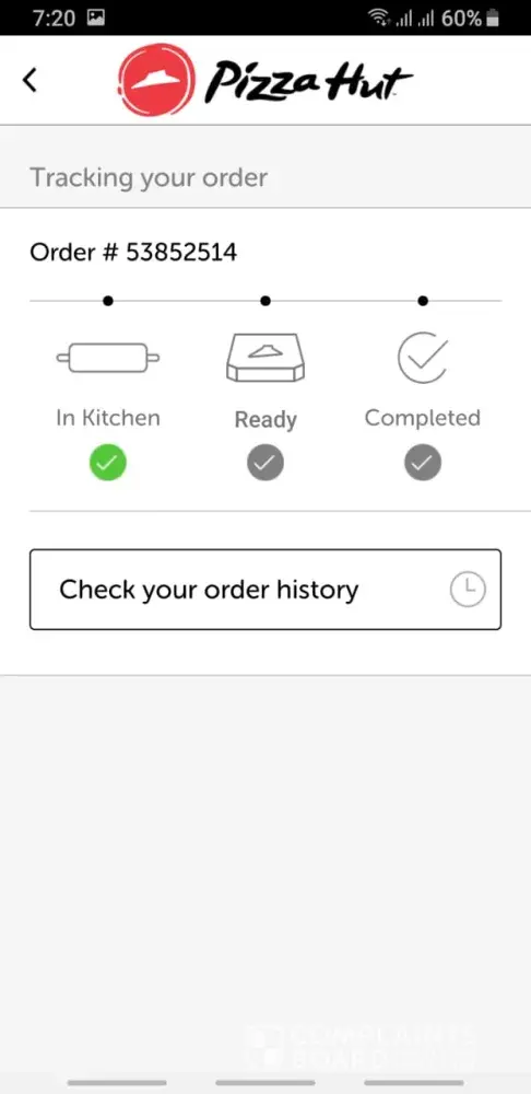 Due to some error on Pizza hut website, she made the payment through debit card but it did not went through.