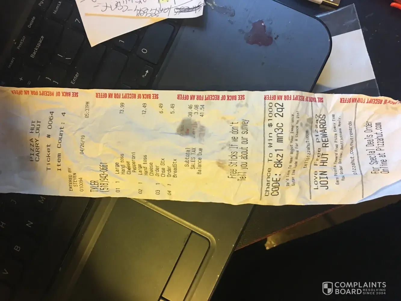 Read full complaintpizza hut receipt survey