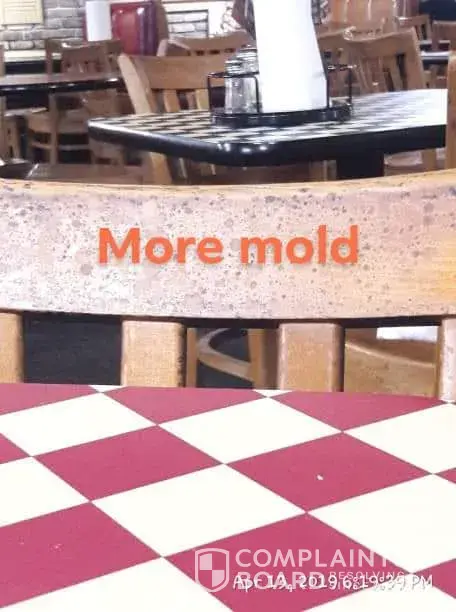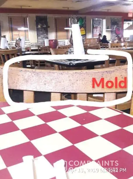After sitting down in a booth big enough for 6 We moved as it was like 30 degrees in that spot. So it was not any better in other side, but stayed put . After the waitress came over and explained the specials we ordered . Waitress wrote our order on a paper towel. janet went to salad bar to get her salad and after comming back to table she noticed the lettuce was brown, broccoli was dirty . I would not let her eat it. I started to notice the place was nasty. Dirt on tables. Gum on window sills 6"from where we lean back . Mold on chairs and light fixtures. Ceiling falling down . And vents that have never been cleaned . It was disgusting. Kids got something out of the 50cent gumball machine and it was so nasty . It was melted . We brought the issues to the waitress and she said the salad is premade in a bag sometimes it's bad . We decided to leave . She said "Ok your choice . If so I need to cancel your pizza". And walked away . REALLY! so we left ... and went to chili's. Such a great move. This place is really nasty. I have eaten there before but it was never like this ..it's been a while since I've been there and will NEVER GO BACK! See pics below.