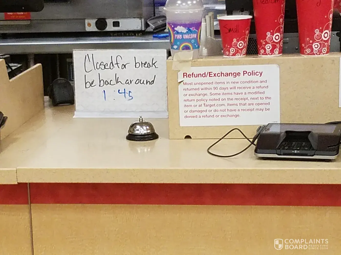 I just visited the pizza hut Express in the novi target for the 2nd time today 09/28/18. The first time I came after 12 noon and was told the ovens were down and they did not have food. I thought I would give it a second shot today and when I walked up to the counter there was no one there. There was not a single Express food item available to grab and go. Not one thing. A gentlemen finally came and when I ordered a pizza breadstick combo meal he informed me they were out of breadsticks. How is a pizza place out of bread items? The coke machine was out of ice, cherry coke and diet coke. The coke I did get was flat. I was offered a substitution item of the breadsticks so I chose popcorn. I sat waiting for my individual pizza to be cooked. After it was delivered I sat to eat my meal in the open tables provided. I watched 3 different customers come up to the counter and leave as the gentlemen left the counter. Eventually another staff member from the Starbucks came and put up a gone on break sign back at 1:45 . Why would you schedule a break of your only attendee during the lunch time frame? Needless to say I am only submitting this complaint because you really have an opportunity to make more money at this location with the amount of traffic I saw come through here but the service and availability is so poor. The Starbucks had a continuous line and help with good service.