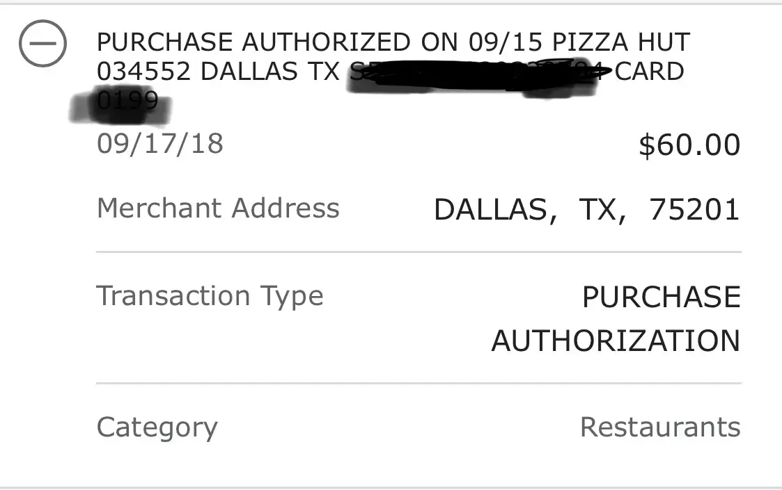 I made a order on September 15, 2018 at 8:45pm to the Fairmont Hotel in downtown Dallas, Tx. My order came to $54.17, but the driver wrote in a tip for $5.83 which charge my credit card $60.00. I will file charges against this driver and file civil suit against this company. I have never had this happen to me using my credit card. The thought of a company employee using a customer credit card is beyond me. I have contacted their corporate offices and still not heard anything back. I am left to file charges and have what was taken returned.