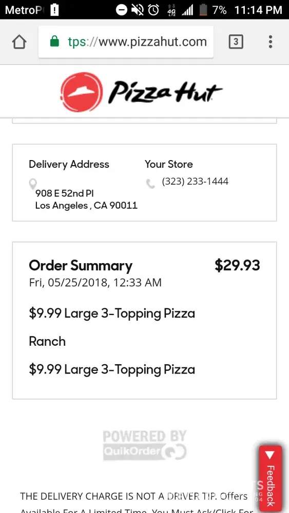 no pizza hut willing to deliver