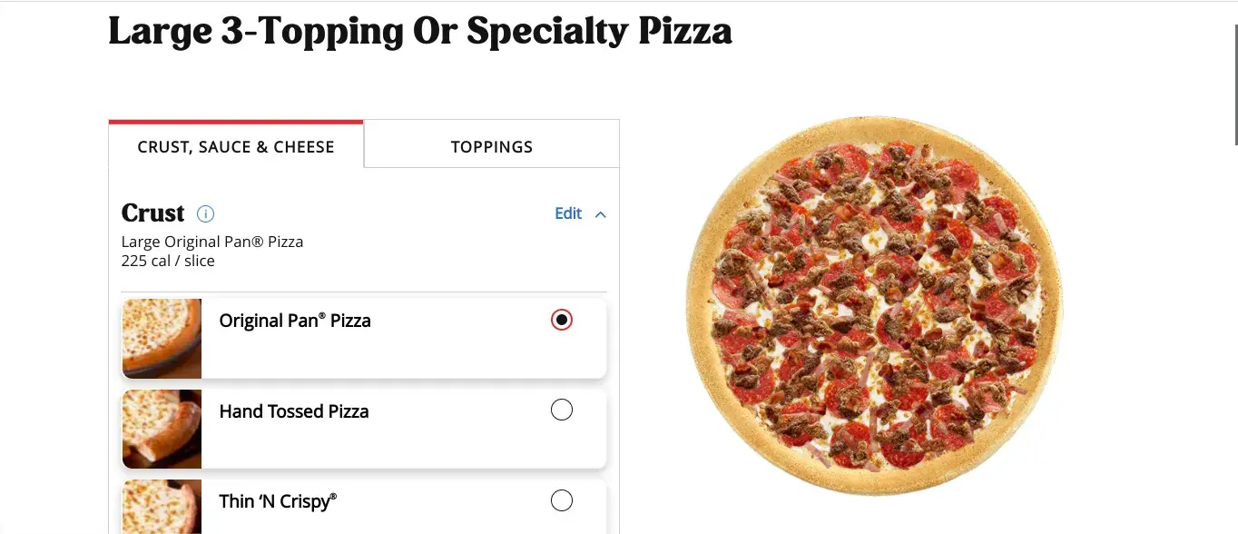 Desired outcome: failed, i want a real meat lovers pizza. why doesnt my pizza look like the advertised picture on the website.. i had 6 pepperonis and barely sausauge i paid 18$ for 8 slices of some [censored]