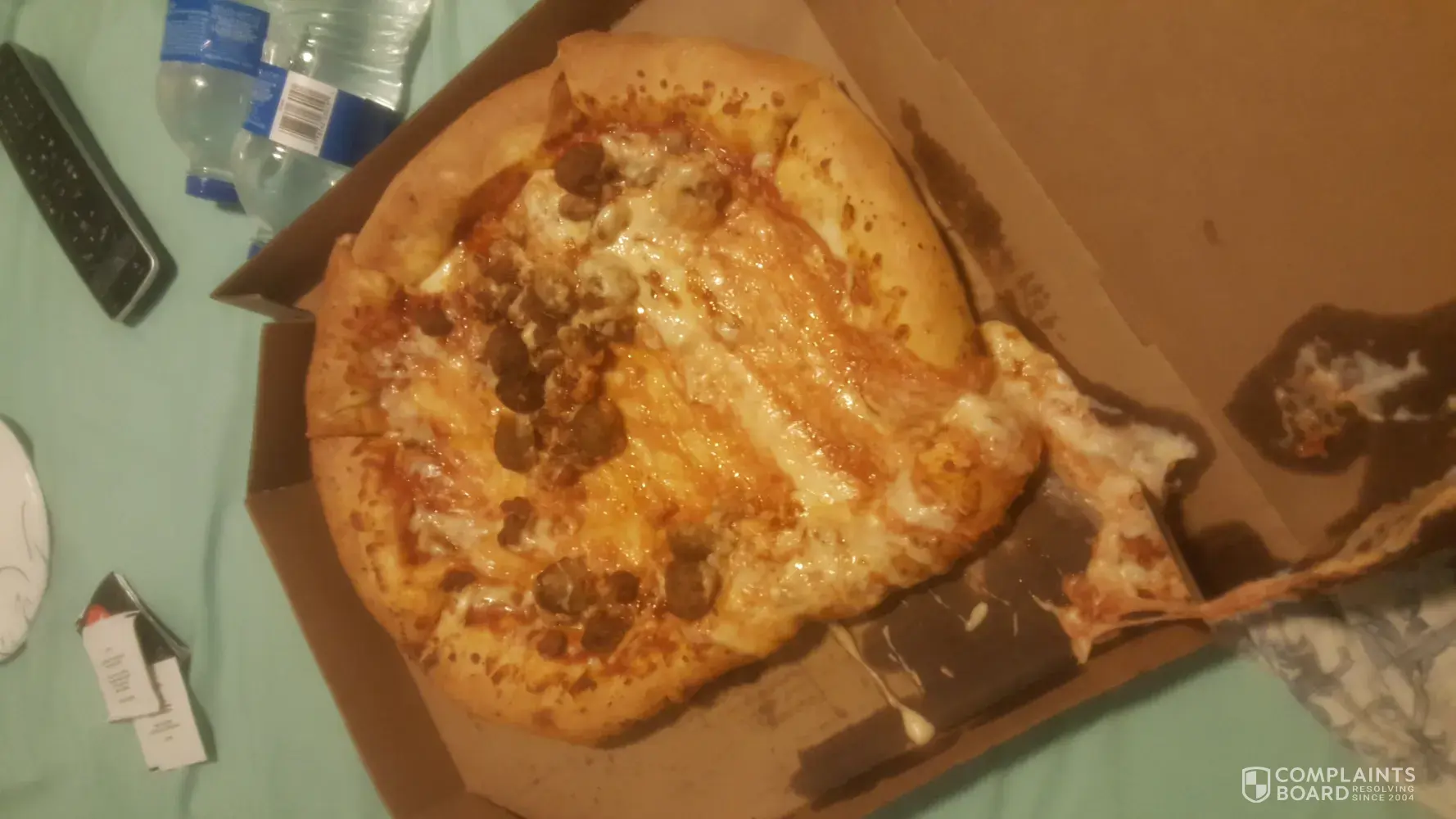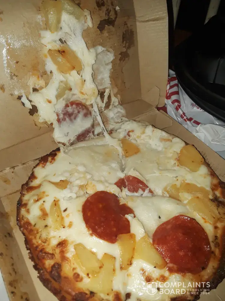 Ordered a thin half cheese half pepperoni extra sauce extra cheese with a 2-liter of soda. This is what I receive. (See picture below). This is my home pizza delivery store, it's very hit or miss. Sometimes you get lucky and get what you ordered other times order is wrong or you receive an upside pizza. I had to quit ordering from this store for the longest time because anytime you order the people making the food were smokers and the food would taste like cigarette smoke. I've been trying to give this store another chance since a new store manager took over the store in November but the past 3 orders have been wrong. I called the store and yes they are remaking but no telling what the next pizza will look like or how long it will be before I receive.