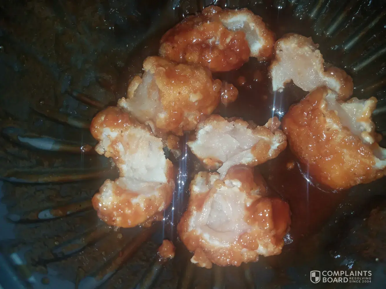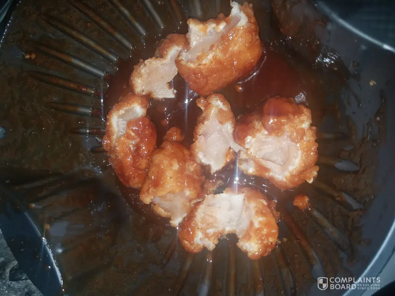 Ordered delivery online tonight 2 pizzas and 8 PC honey BBQ boneless wings. Started eating our wings had a couple then noticed they tasted funny come to find out they were completely raw inside . I am hoping we don't get sick because we both ate a couple before realizing something wasn't right. After went and cut open the rest and they were all raw in the middle