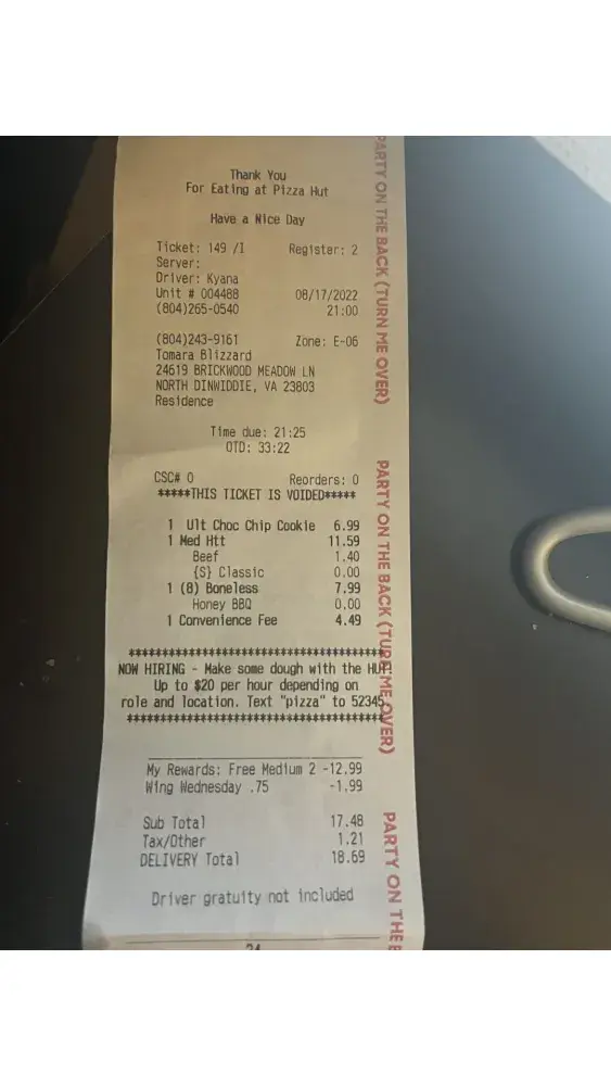 Today (8/15/22) at 12:49 pm I placed an order for delivery through the Pizza Hut app. My order wasn’t delivered until 4:49 pm