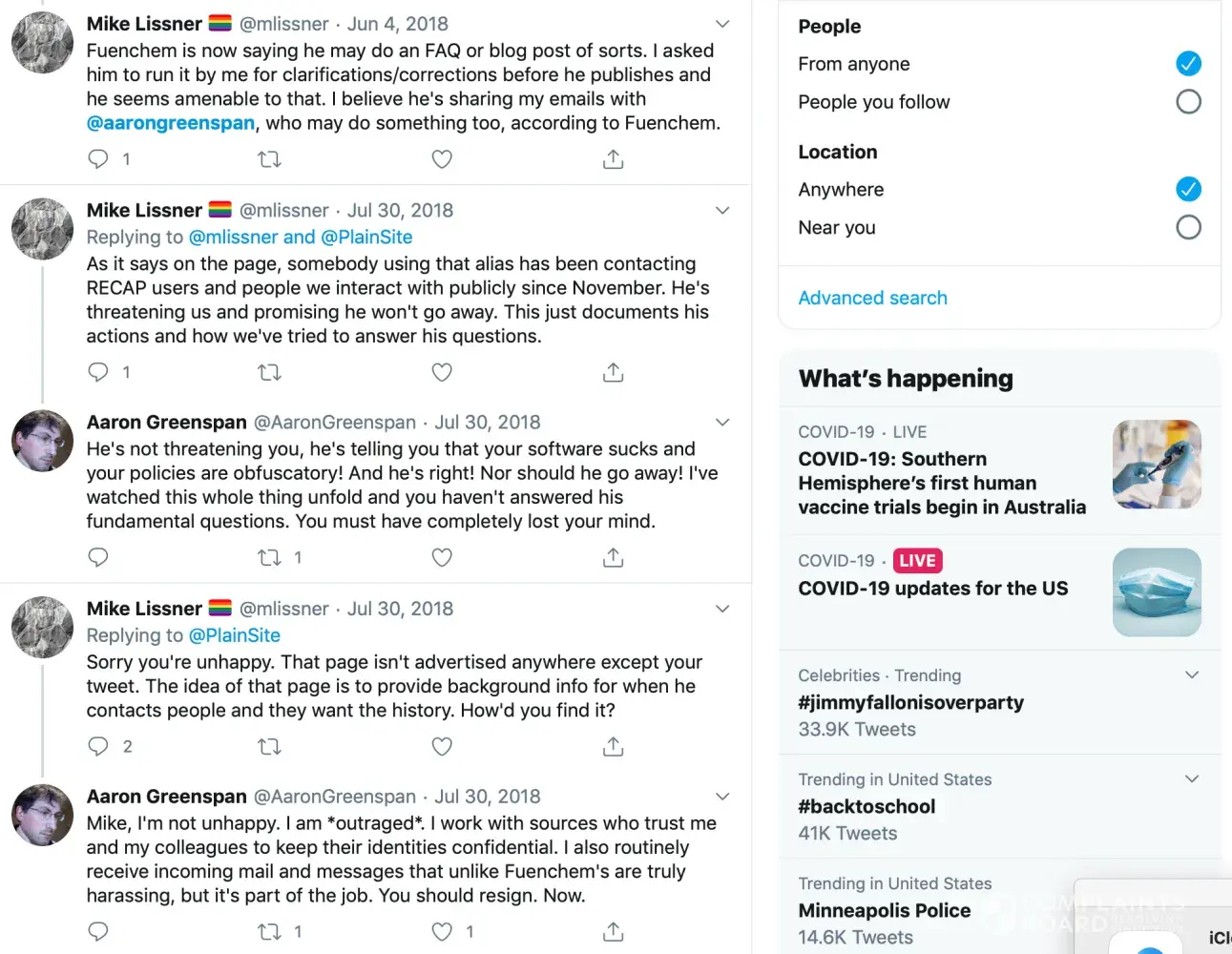 plainsite.org under fraudulent 501 (c)(3)Think Computer Foundation owned by mentally deranged sociopath Aaron Greenspan, Neil Greenspan and Judith Keene Greenspan that is being used to data mine personal information in an obsessive manner and then used to blackmail, extort, cyber stalk, cyber bully, serial harass, do lots of doxxing and lots of online shaming.