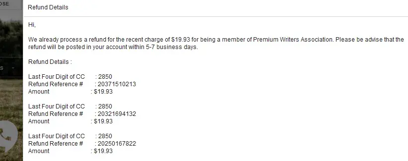 I take it this is Writers Life. Thank you Kay Millward. I hope you are as quick to cancel the payments as you are to take them.