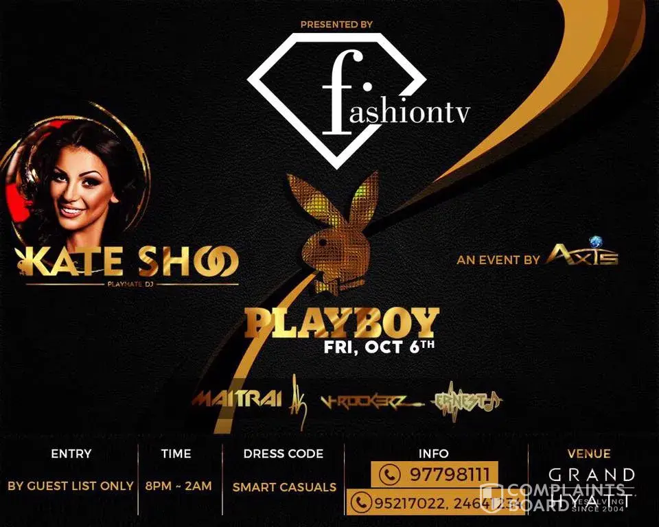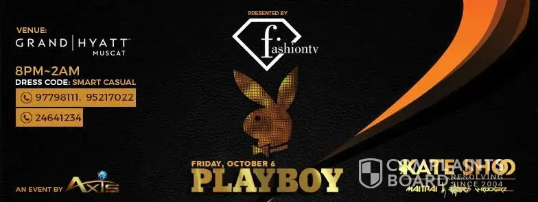 This is Matt Joseph from Muscat, Oman. I am a party lover and keep attending Parties wherever possible. Recently just saw a poster on social media showing a Playboy party to be held in Muscat for the first time featuring Dj Kate Shoo at GRAND HYATT MUSCAT.
