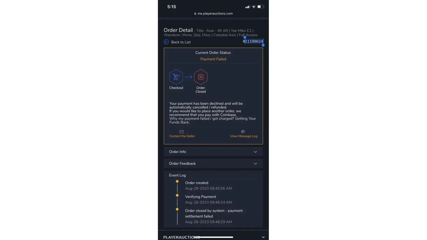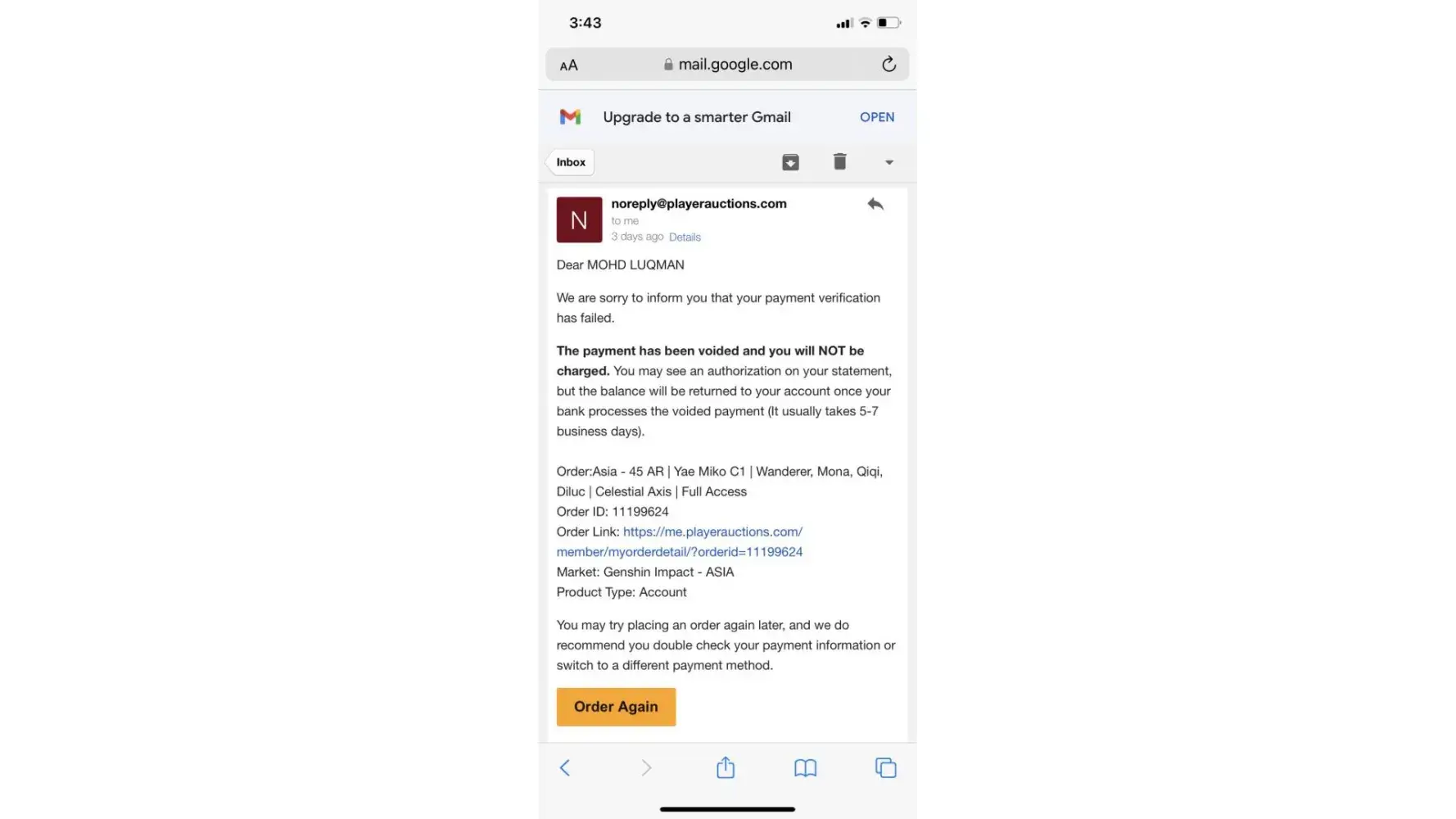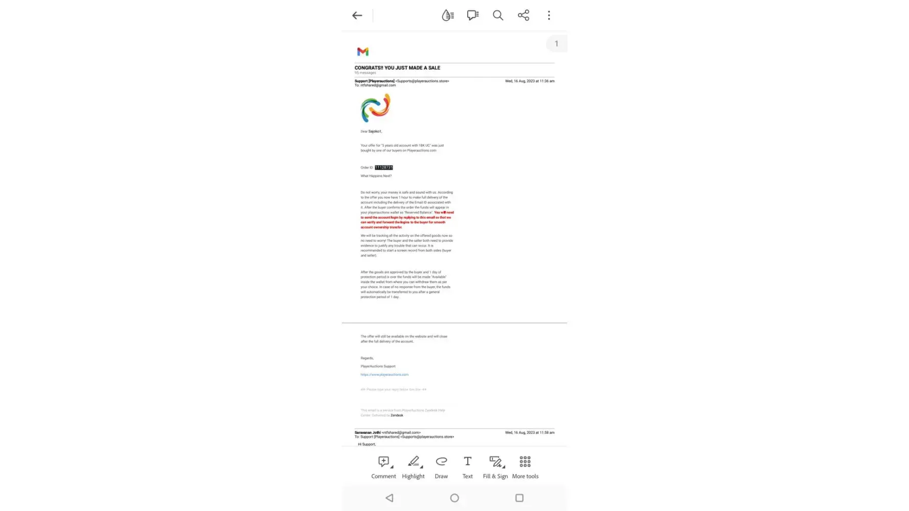 Desired outcome: I want my money and full update on that account because i also got the confirmation email from buyers side and playerauction website