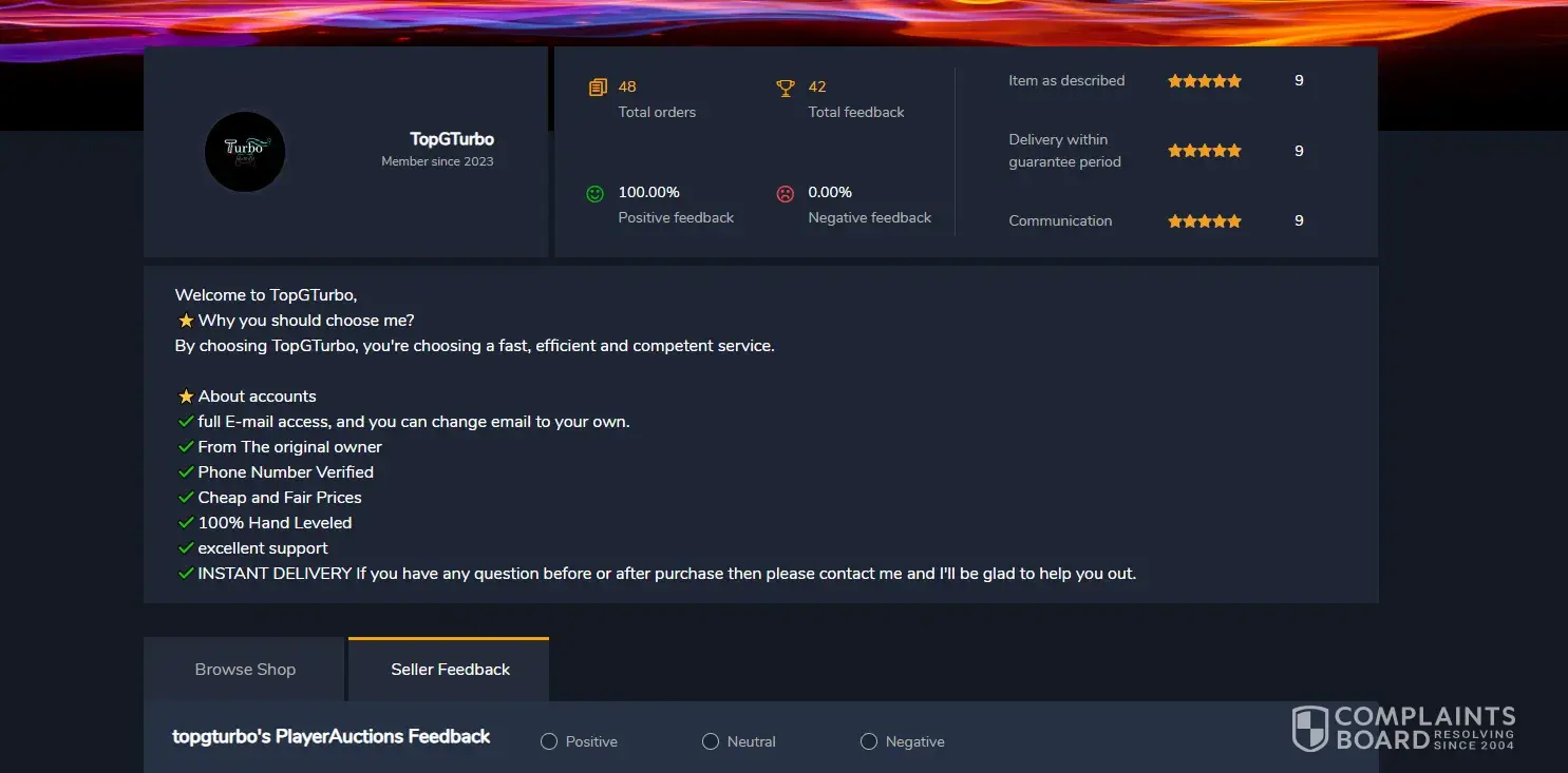 here is my store look at it no one have problem before (https://www.playerauctions.com/store/topgturbo/)