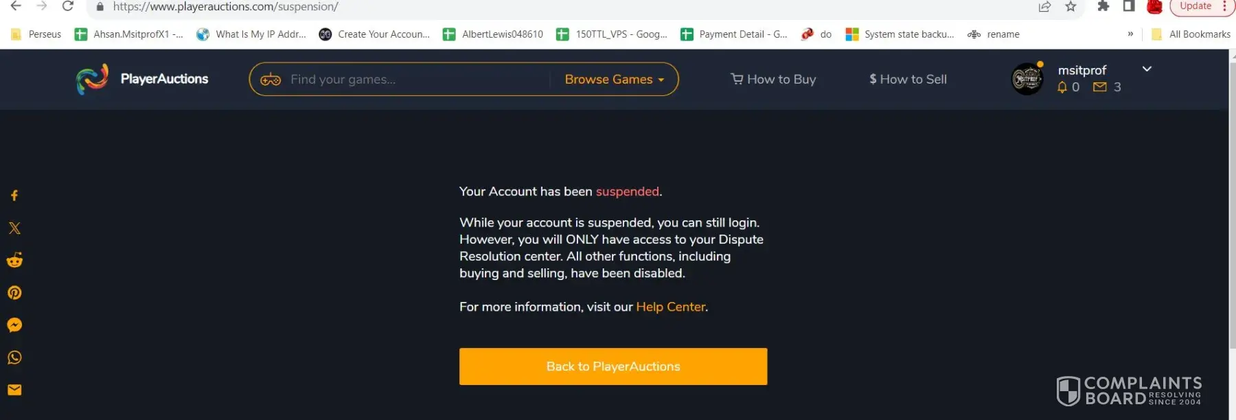 and how playerauctions suspensed my account permentaly for one problem and i have more sells product and have 100% positive rate please help me for that