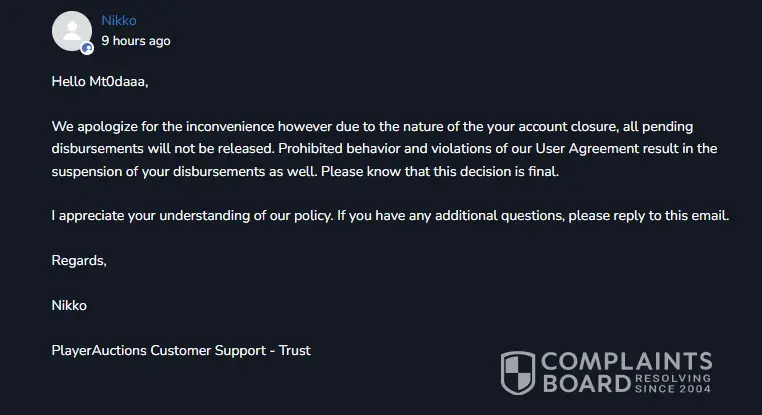 Read full reviewPlayerAuctions suspended my account and refused to release my funds