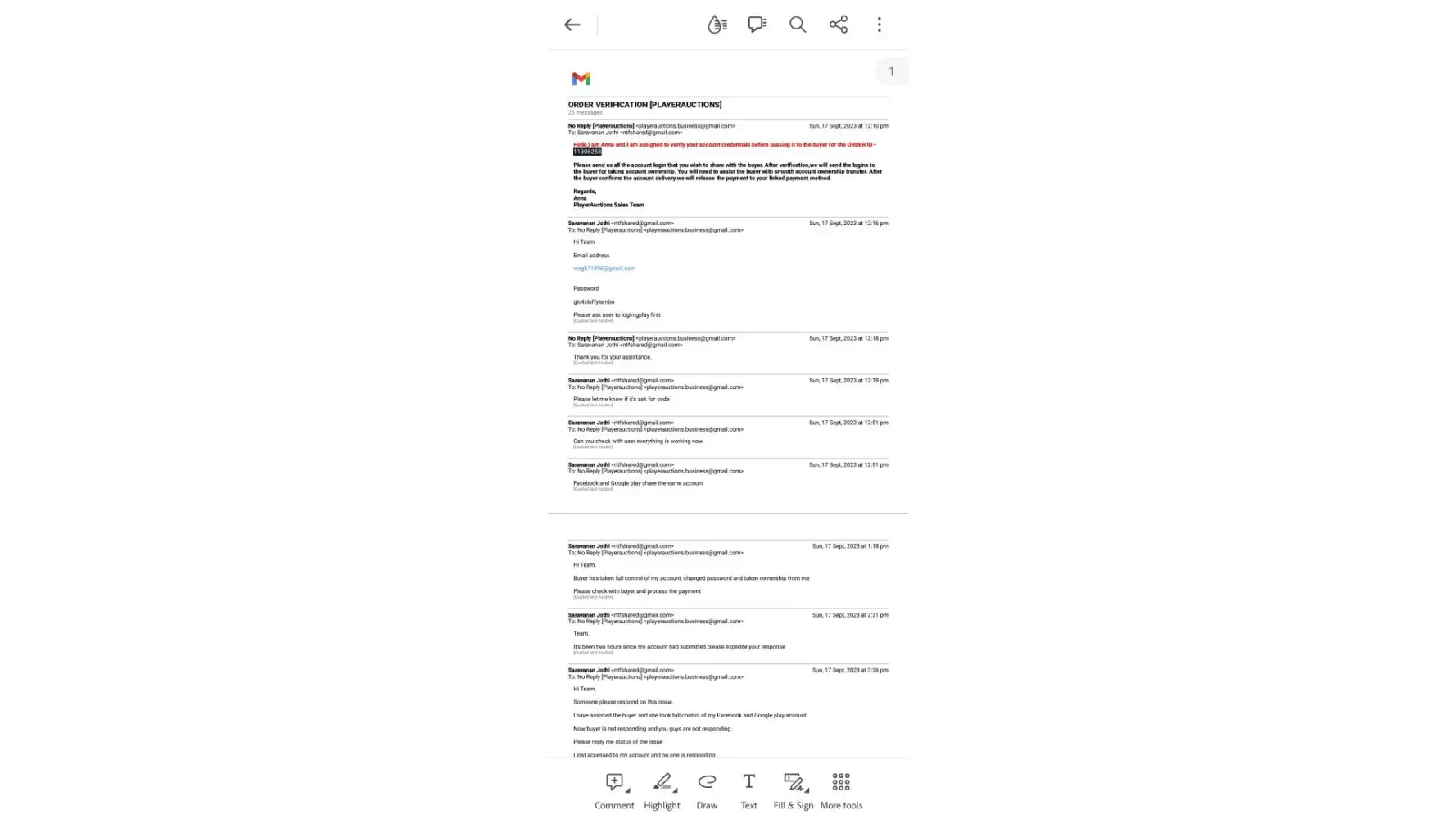 I have the email confirmation of the order sold with my username provided by playerauction auction team.